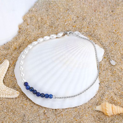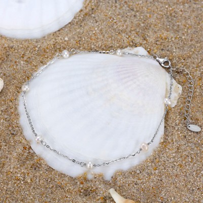New Arrival Foot Jewelry 925 Sterling Silver Gold Plated Women Beach Pearl Mounts Anklets