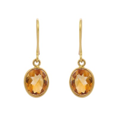 Handmade Natural Oval Citrine Gemstone Earrings 18K Solid Yellow Gold Dangle Earrings Fine Jewelry