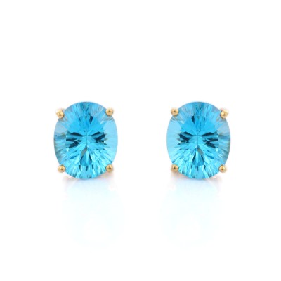 Trending Handmade Natural Oval Shape Blue Topaz Gemstone Earrings 10K Solid Yellow Gold Solitaire Earring Studs Fine Jewelry