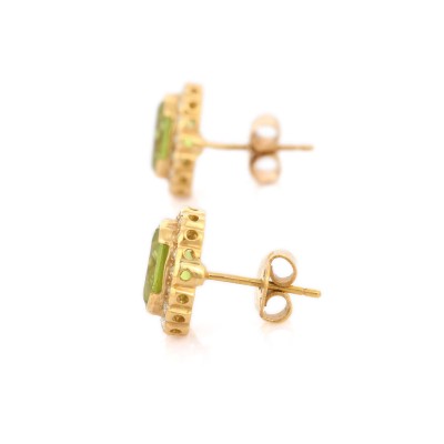 Fashion Jewelry Natural Peridot And Diamond Gemstone Earring Studs 18K Solid Yellow Gold Designer Earrings For Women Girls