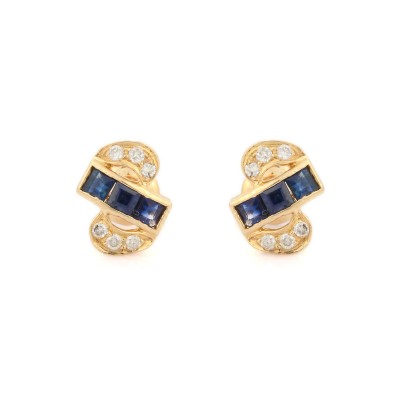 Luxury Jewelry Genuine Real Blue Sapphire With Diamond Gemstone Earring 14K Solid Yellow Gold Minimal Earring Studs Fine Jewelry