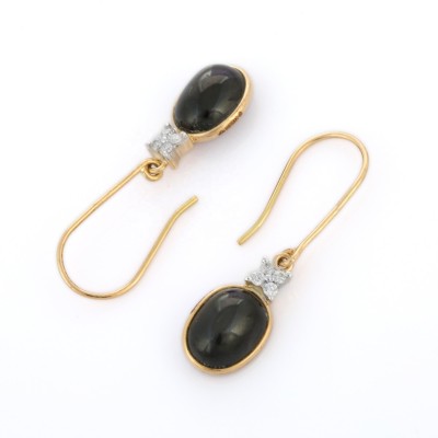Fine Jewelry Natural Black Star And Diamond Gemstone Earrings 14K Solid Yellow Gold Dangle Earring Birthday Gift For Women Girls